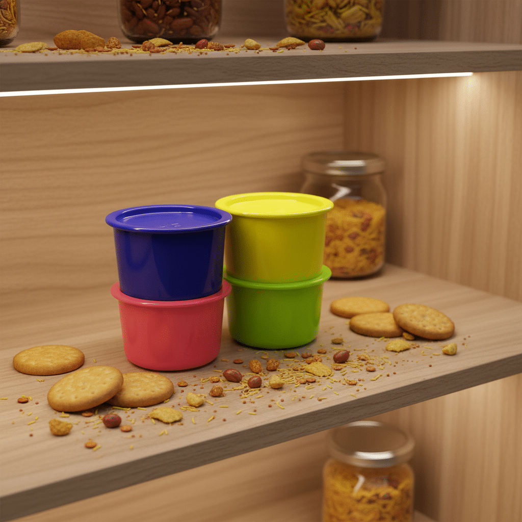 With a 575ml capacity, these “Mini” containers are the perfect size for storing everyday essentials that usually clutter your cabinets. They are ideal for keeping tea leaves, coffee powder, sugar, dry fruits, cashew nuts, or kids’ favorite candies crisp and moisture-free. The virtually airtight and liquid-tight seal ensures that humidity stays out, extending the shelf life of your premium ingredients.